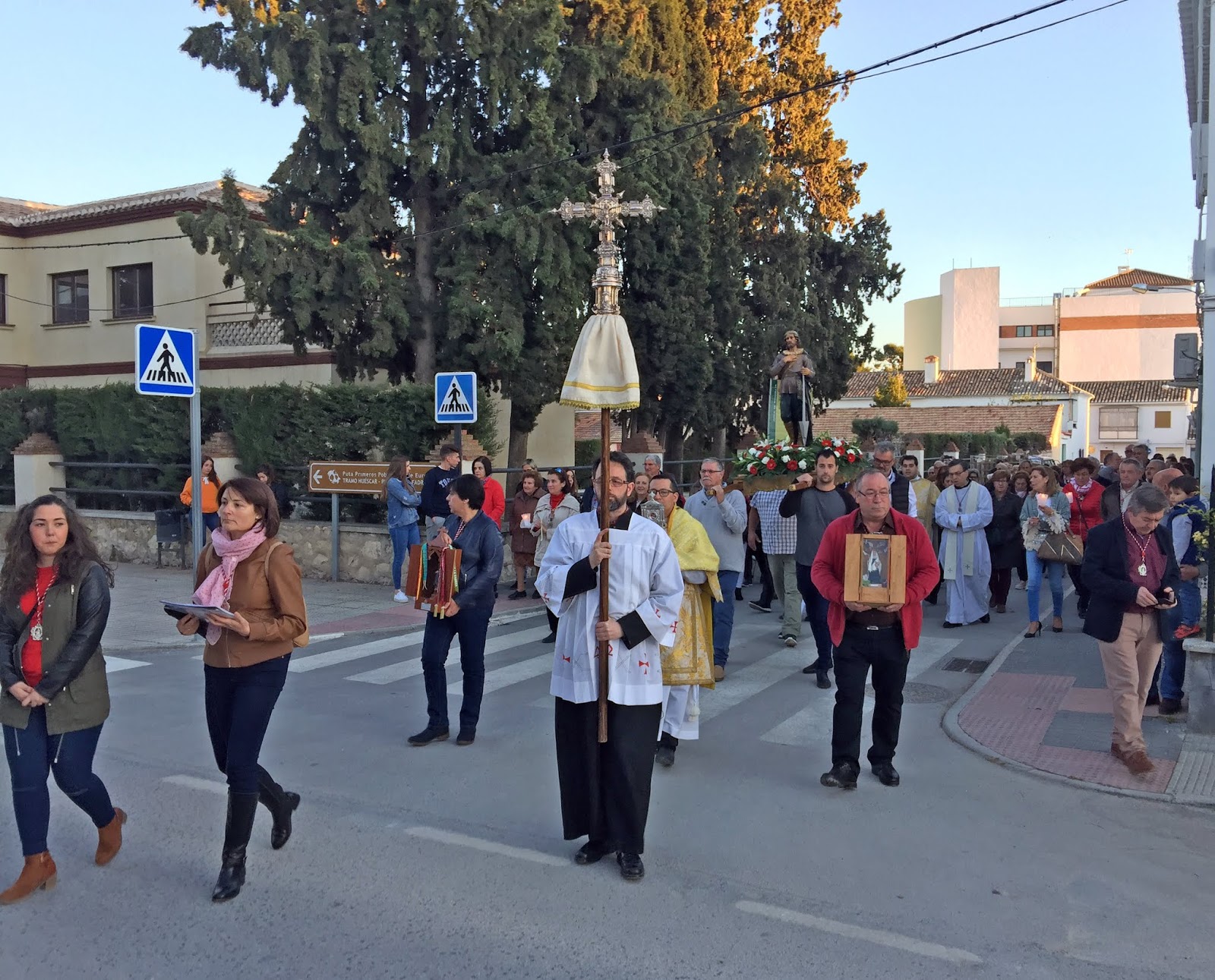 A las 19 horas daba comienzo la celebración de una Misa de bienvenida oficiada por el Párroco Rvdo. D. José Antonio Martínez Ramírez (Colegiata Sta. María La Mayor de Huéscar), acompañado de los Rvdos. D. Ángel Luis Miralles Sendín (Real Colegiata de San Isidro y Ntra. Sra. del Buen Consejo de Madrid), D. Miguel Castro Castro -natal de Fuerte del Rey (Jaén)- y demás concelebrantes.
