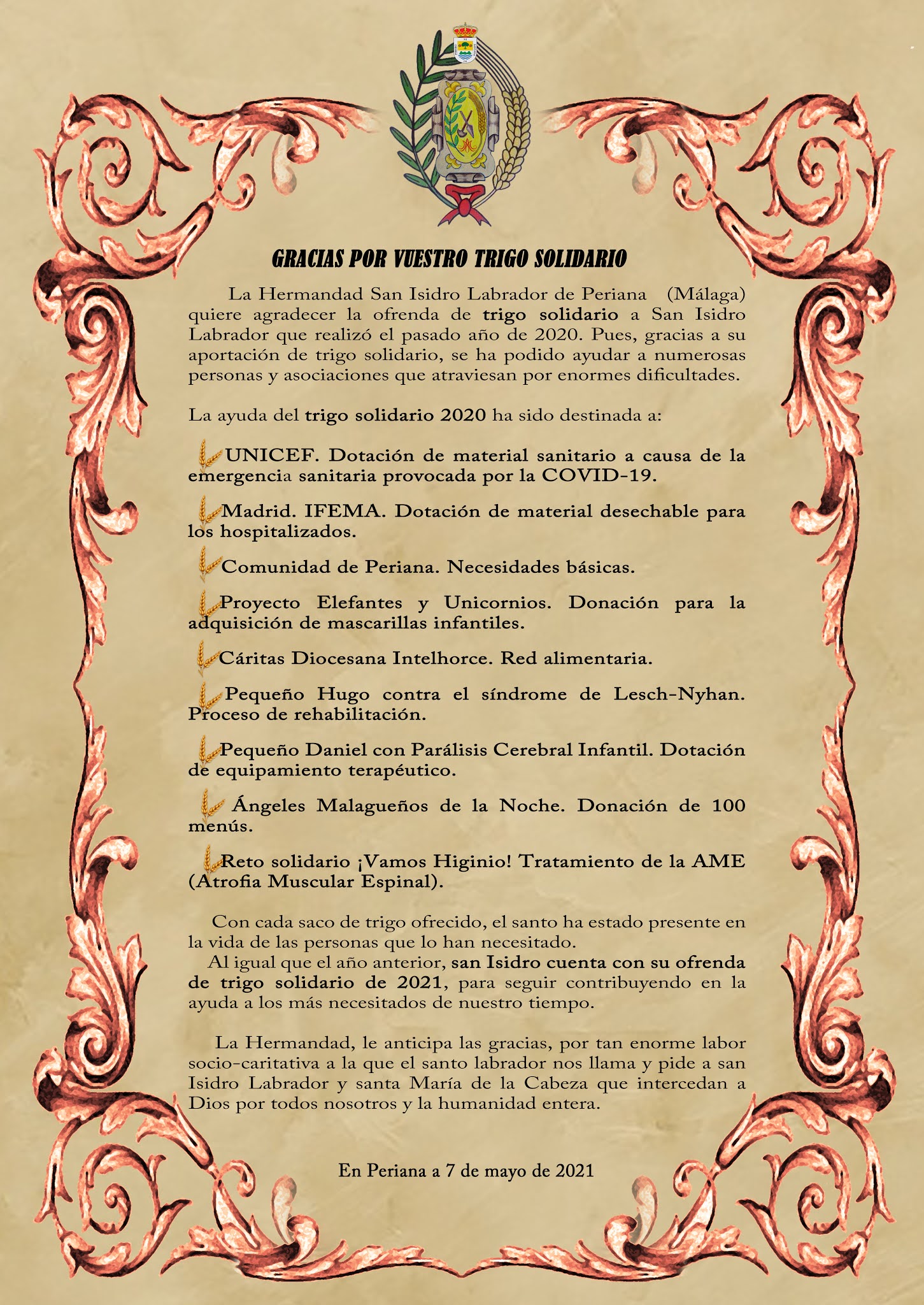 GRACIAS POR VUESTRO TRIGO SOLIDARIO