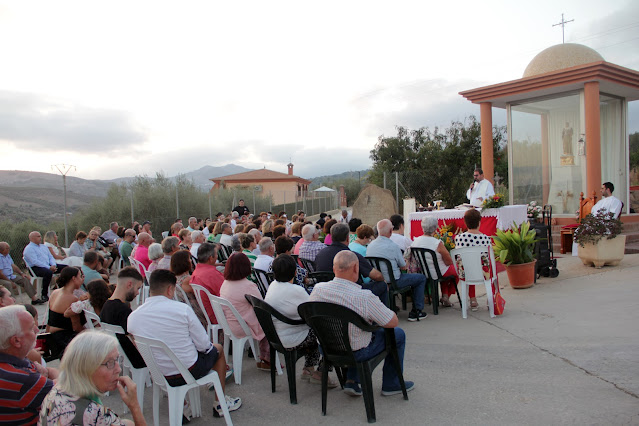 Congregados en la aldea de Las Mayoralas, a partir de las 20 horas, tuvo lugar la celebración de una emotiva Misa frente al templete de santa María de la Cabeza. La Eucaristía fue oficiada por el Párroco Rvdo. D. Sergiu Antal y contó con la participación del Coro Rociero Camino de Olivares.